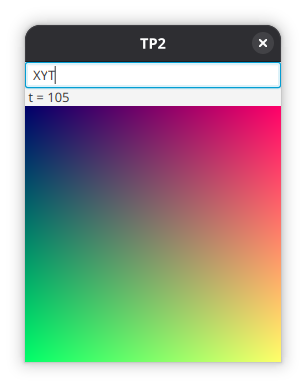 El programa generará una animación de 256 cuadros. Cada cuadro es una imagen de 256 x 256 pixeles. Cada pixel está compuesto por 3 valores enteros R, G, B entre 0 y 255.